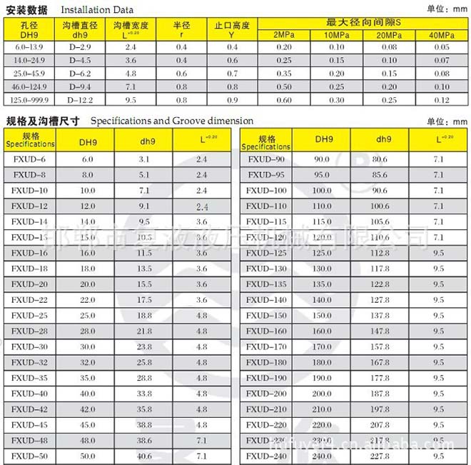 FXUD孔用U形組合密封