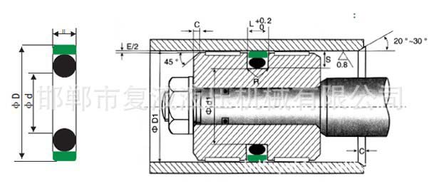 由高耐磨聚四氟乙烯復合材料矩形圈和O形橡膠密封圈組成。O形圈提供足夠的密封力,對矩形圈的磨耗起補償作用。與導向支撐環(huán)配套使用,缸徑小于∮40的規(guī)格應采用分體溝槽。